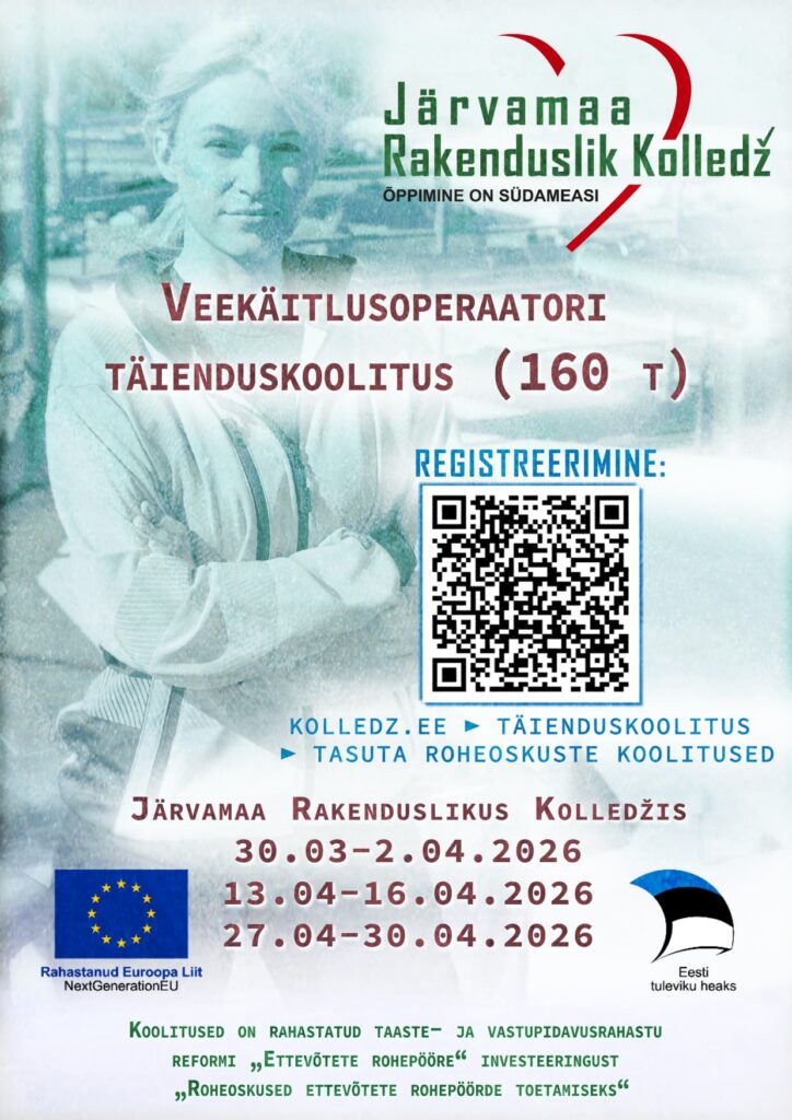 Järvamaa Rakenduslikus Kolledžis alustab taas 160-tunnine veekäitlusoperaatori täiendõppe koolitus.